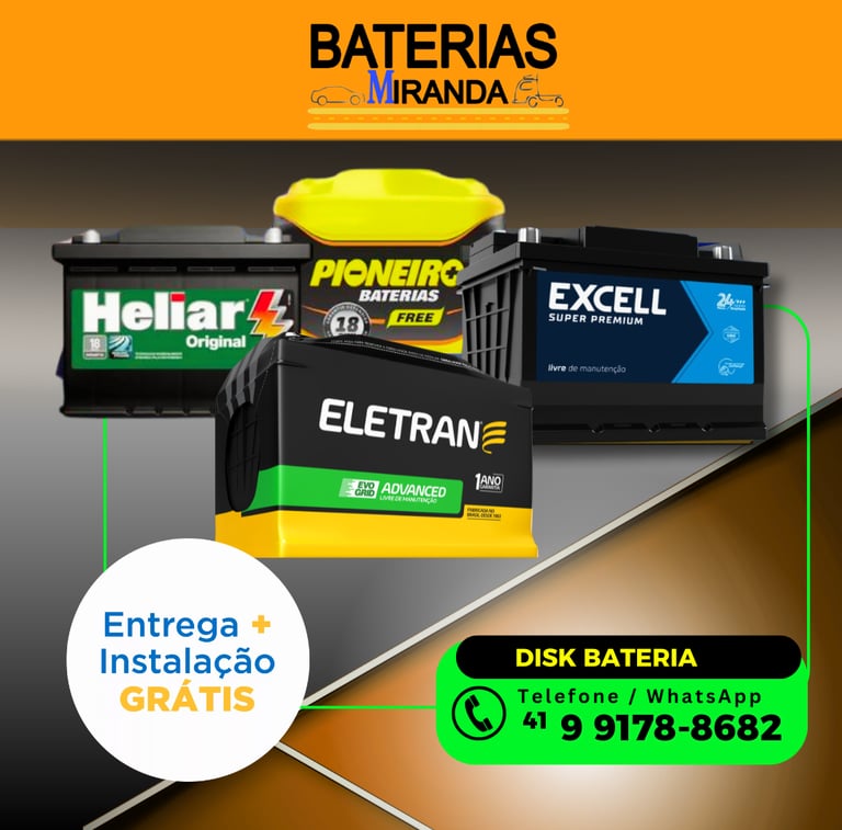 Bateria de Carro em Araucária e Região com Garantia e Assistência Técnica Autorizada
